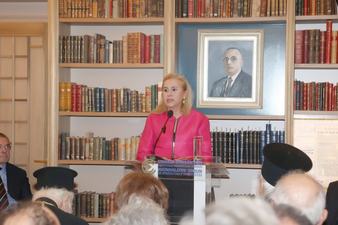 Μαρία Αντωνιάδου, Πρόεδρος ΕΣΗΕΑ και Μορφωτικού Ιδρύματος στην αίθουσα της βιβλιοθήκης που με θέληση, αγώνα και κόπο κατάφερε να την κάνει στολίδι της ένωσης.