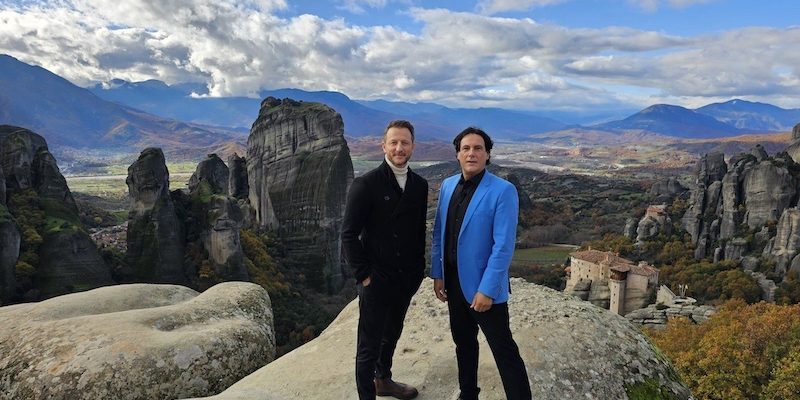 Στους ιερούς βράχους των Μετεώρων Κώστας Καραφώτης, Χρήστος Νέζος από τα γυρίσματα της εκπομπής Ταξιδεύοντας