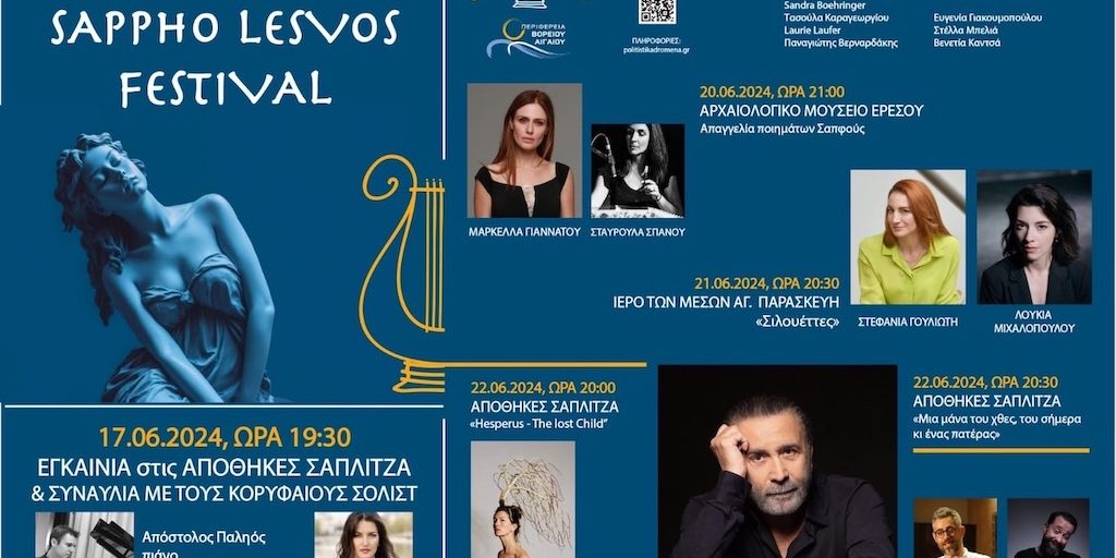 Το SAPPHO LESVΟS FESTIVAL, πραγματοποιείται φέτος για πρώτη φορά στην γενέτειρα της ποιήτριας Σαπφώ, 20 με 22 Ιουνίου 2024.